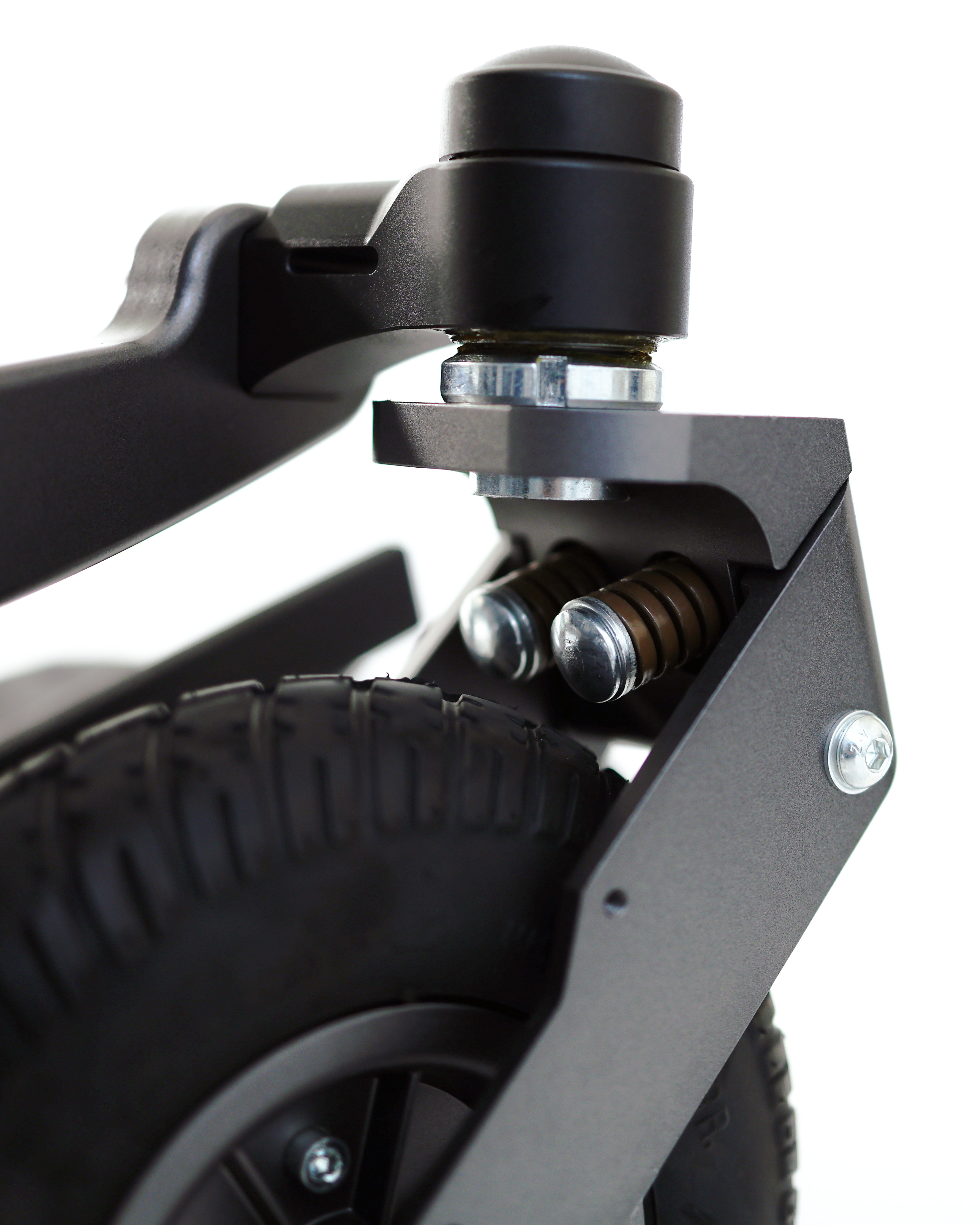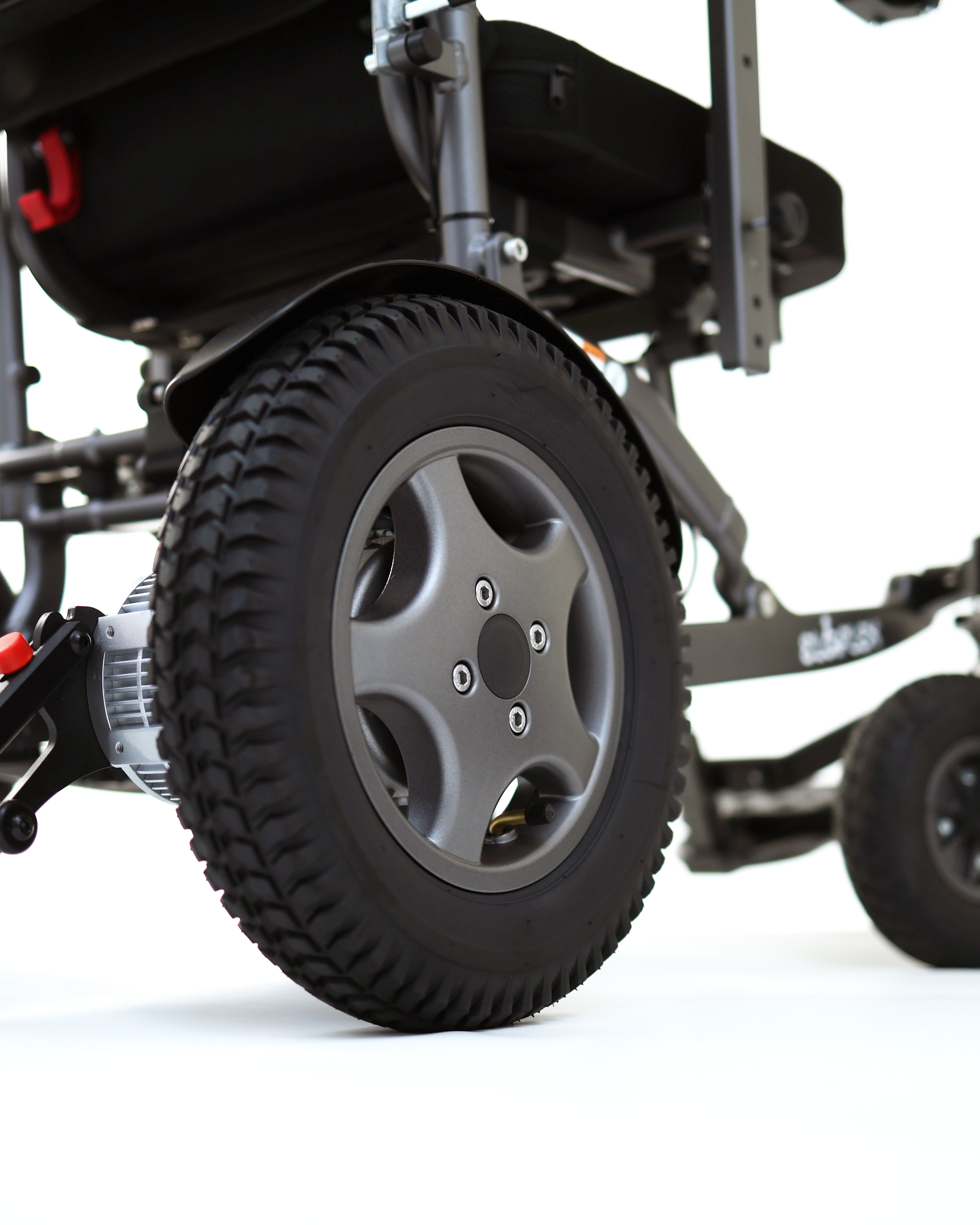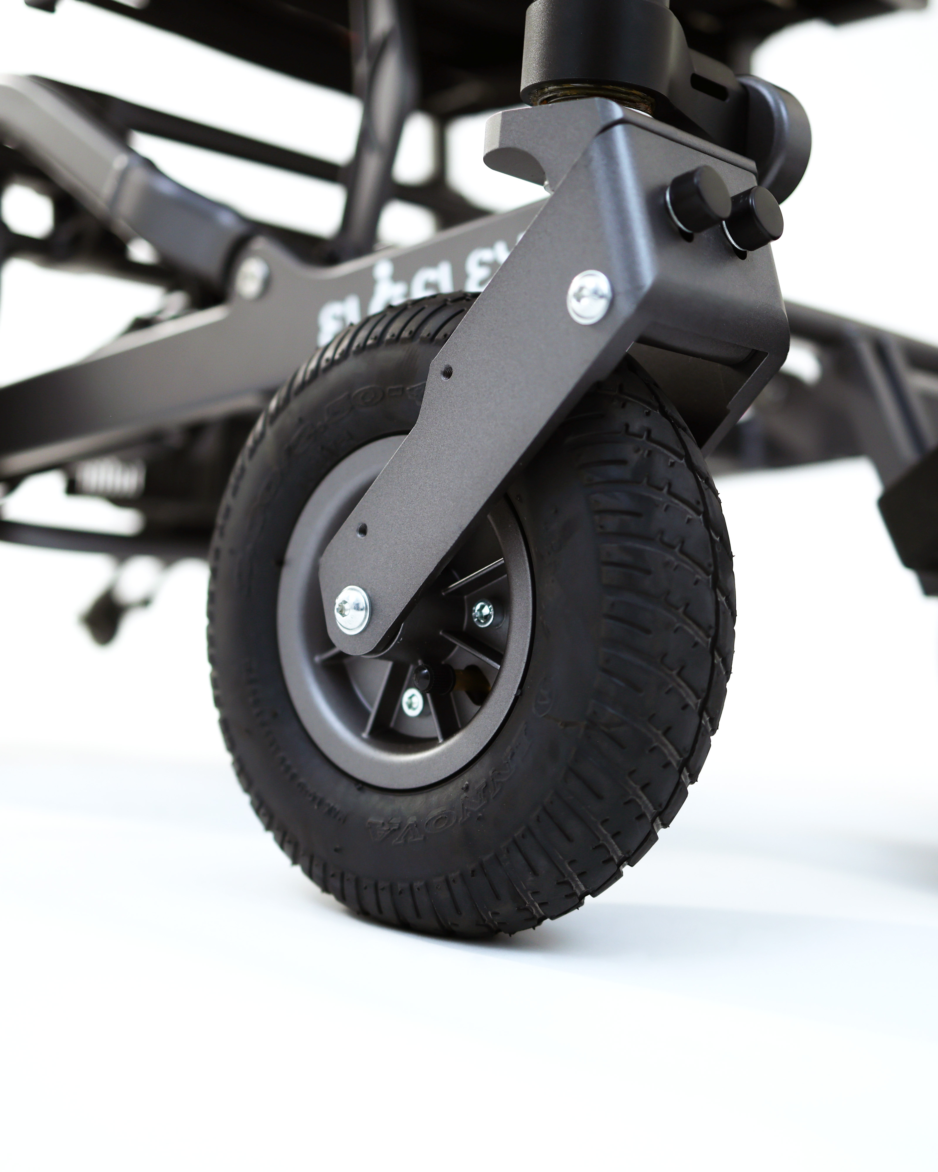 Den här modellen har extra kraftiga och breda lufthjul runt om vilket ger överlägset grepp och framkomlighet oavsett underlag. Dessutom får du en bekvämare upplevelse när du kör på ojämna underlag som grusvägar och kullersten.