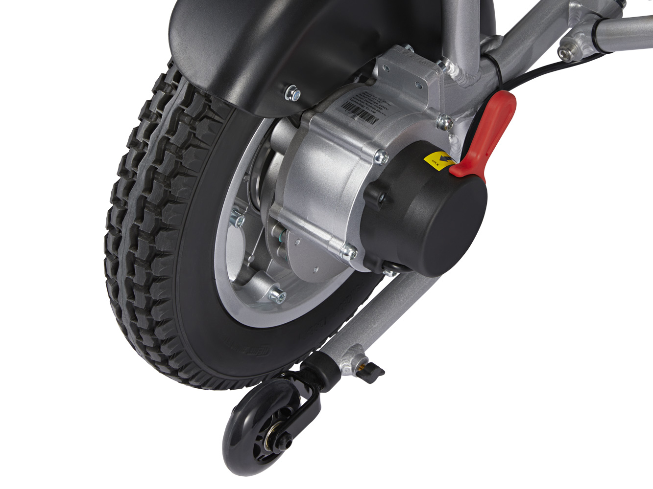 På den här modellen får du stora 12 tums luftfyllda bakhjul vilket ger överlägset grepp och framkomlighet oavsett underlag. Dessutom får du en bekvämare upplevelse när du köp på ojämna underlag som grusvägar och kullersten.