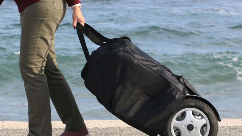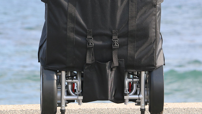 Väskan är svart och tillverkad av tålig nylonväv. Man för väskan över Eloflexen när man har stolen hopfälld och fäster den under stolen med spännen. Det finns två handtag på väskan som gör det enkelt att rulla stolen även när väskan sitter på.