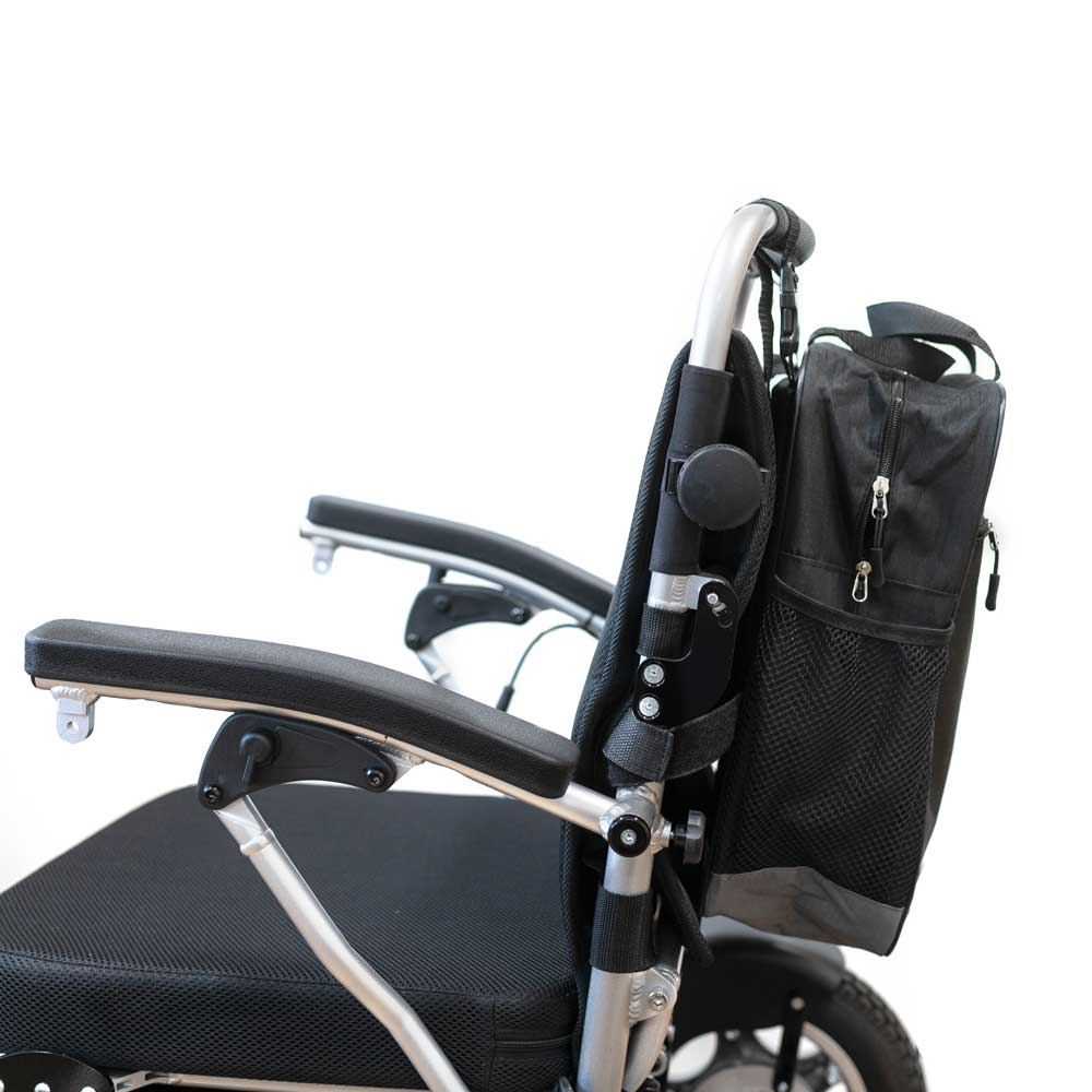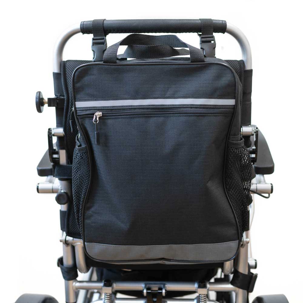 En rymlig och tålig väska som passar utmärkt till alla Eloflexmodeller. Ryggstödsväskan monteras med band runt elrullstolens ryggstöd för att sedan smidigt tas av och på med snabbspännen och kardborrband. Väskan har utöver det stora huvudfacket även en rymlig frontficka samt sidofickor av nät. Ryggstödsväskan är försedd med reflexband för ökad säkerhet. Väskan rymmer 16 L och är 39 cm hög, 37 cm bred och 12 cm djup.