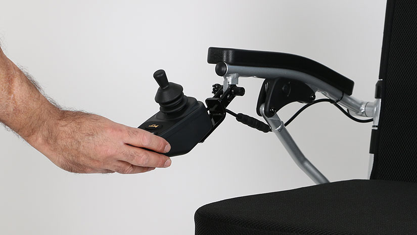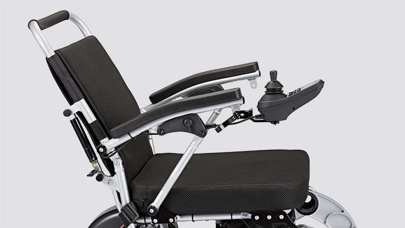 Ergonomiaan ja käytettävyyteen on kiinnitetty erityistä huomiota. Älykkään ohjaussauvan kiinnike taittuu alas, jolloin pääset lähemmäs pöydän reunaa, ja jalkatuki sulkeutuu siististi pois istuessasi tai seistessäsi. Suuret ilmatäytteiset takapyörät ja etuakselin jousitettu pehmuste takaavat hyvän iskunvaimennuksen myös epätasaisilla pinnoilla.
