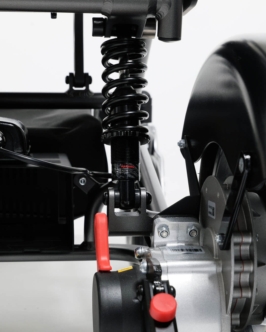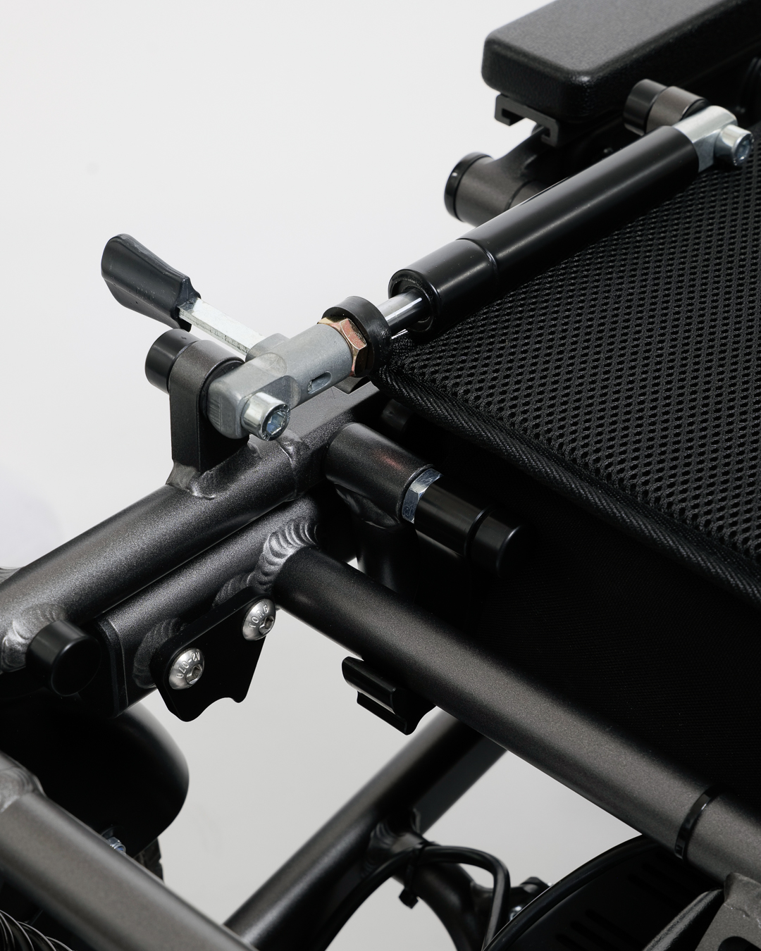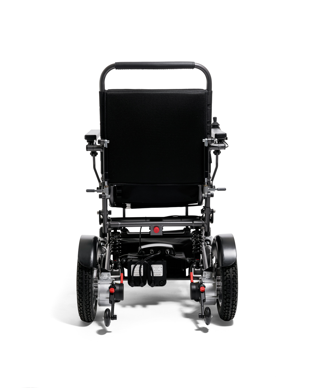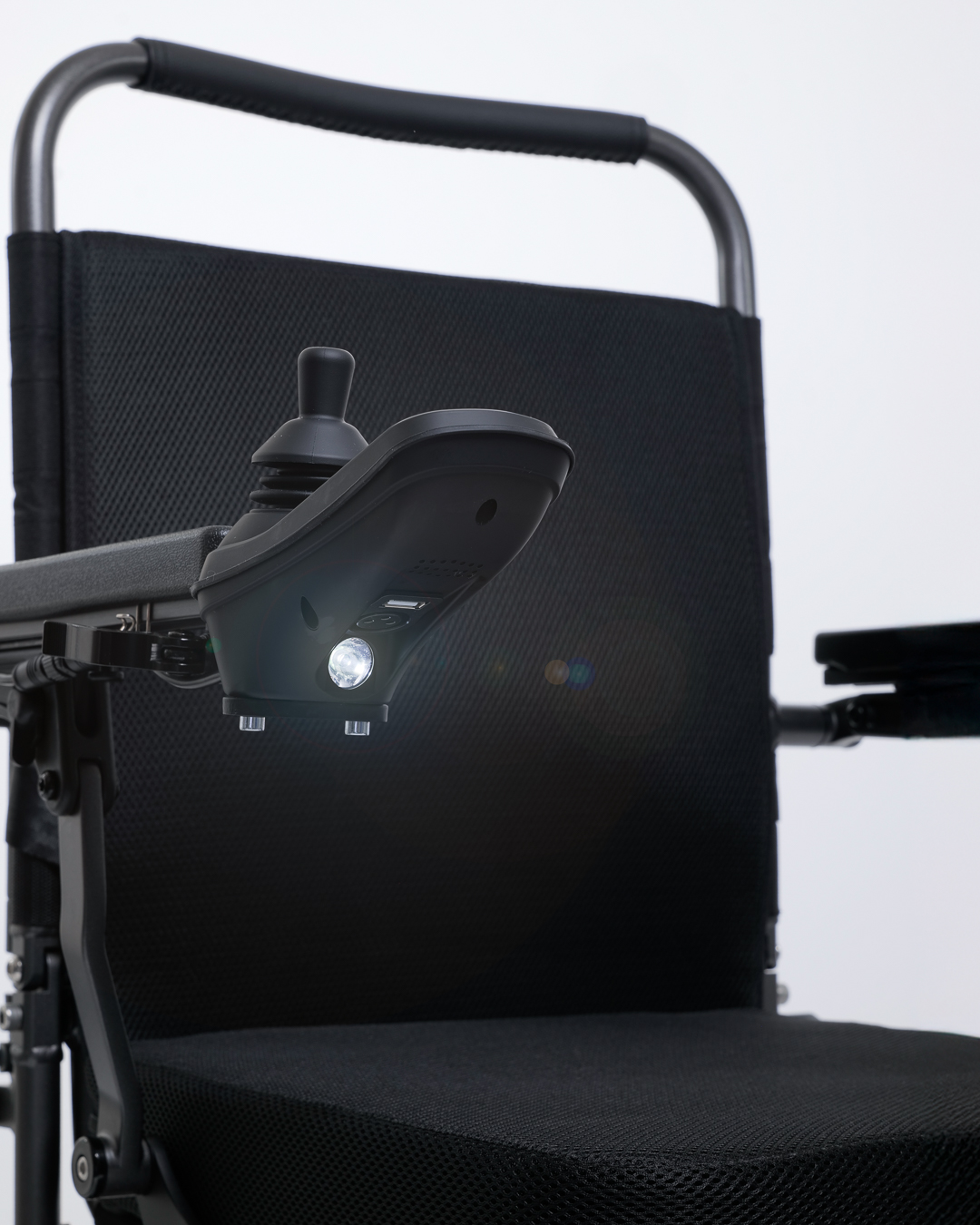 Säädettävät käsinojat ja jalkatuet mahdollistavat yksilöllisemmän istuvuuden ja vahvistavat mallin mukavuuden korostamista. Kolmella akkuosastolla varustettu malli tarjoaa pidemmän käyttöajan pidemmille matkoille. Kun se on taitettuna, käytännöllinen turvalukko pitää pyörätuolin lukittuna taitetussa asennossa, mikä tekee kuljetuksesta ja säilytyksestä helppoa.