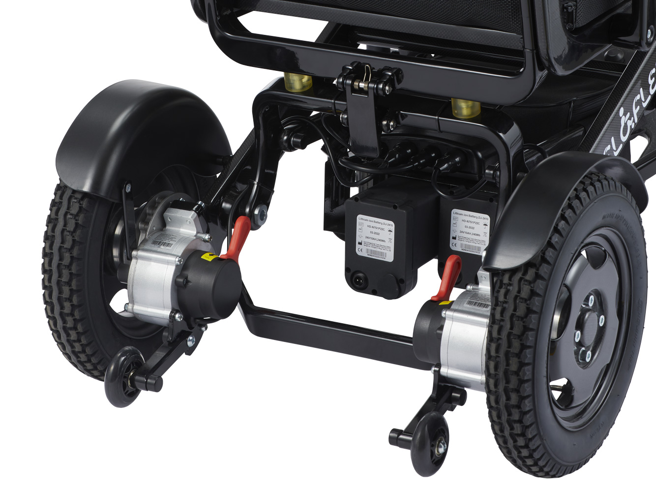 Hiilikuitu on tunnettu uskomattomasta lujuus-painosuhteestaan, ja se on suosittu materiaali esimerkiksi polkupyörissä, autoissa, veneissä, lentokoneissa ja rakennustekniikassa. Miksei näitä etuja voitaisi tuoda myös sähköpyörätuoleihin? Hiilikuiturunkomme ei ole vain huomattavan kevyt, vaan se on myös tinkimättömän kestävä, mikä takaa tasaisemman ja miellyttävämmän ajokokemuksen.